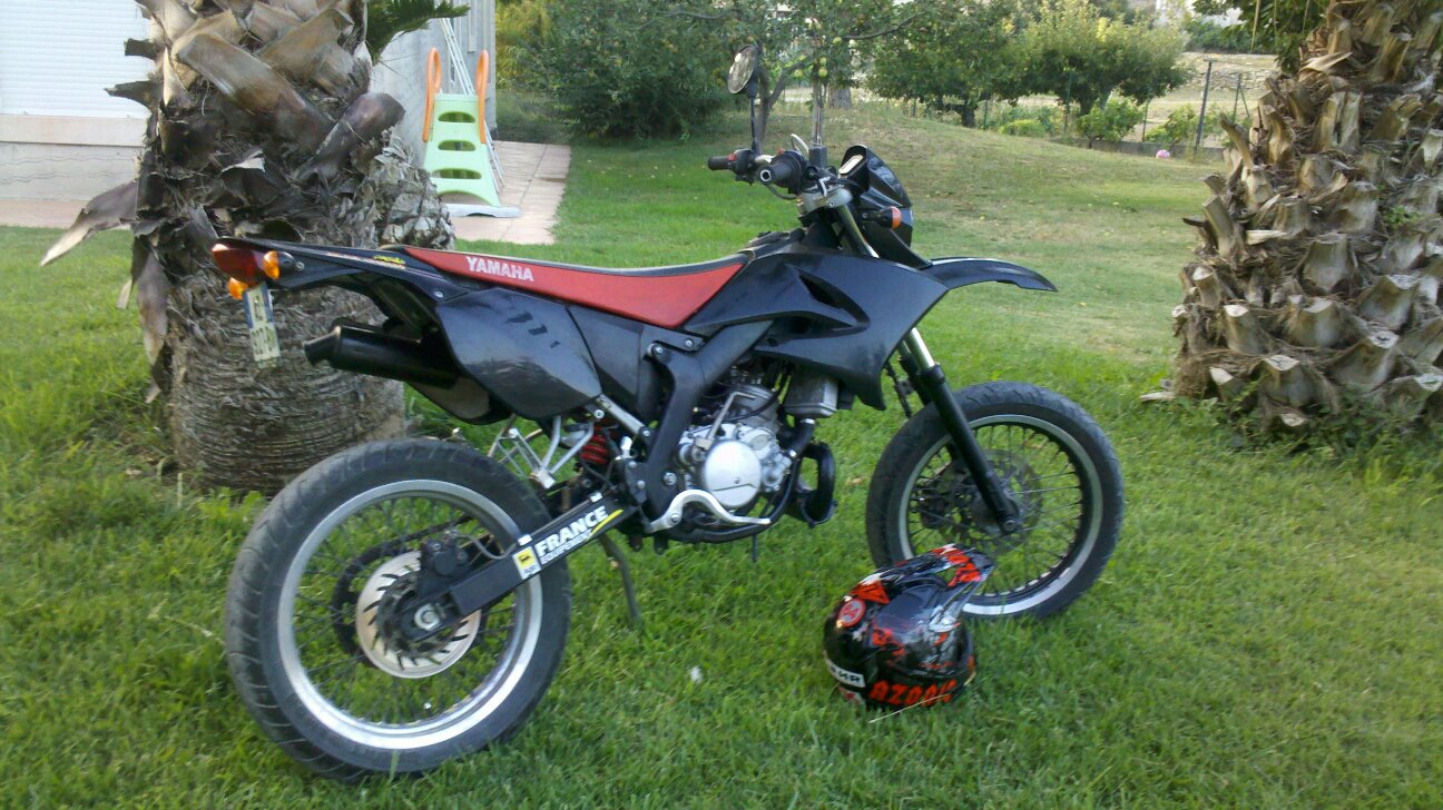 voici ma dt50x de 2009 que j’ai acheter en juin 2012 pour la modite somme de 150€, elle était serrer dans un piteu état ( kit chaine, plaquette disque, radiateur… ) du coup j’ai tout rénover la partie cycle et mis la config suivante :